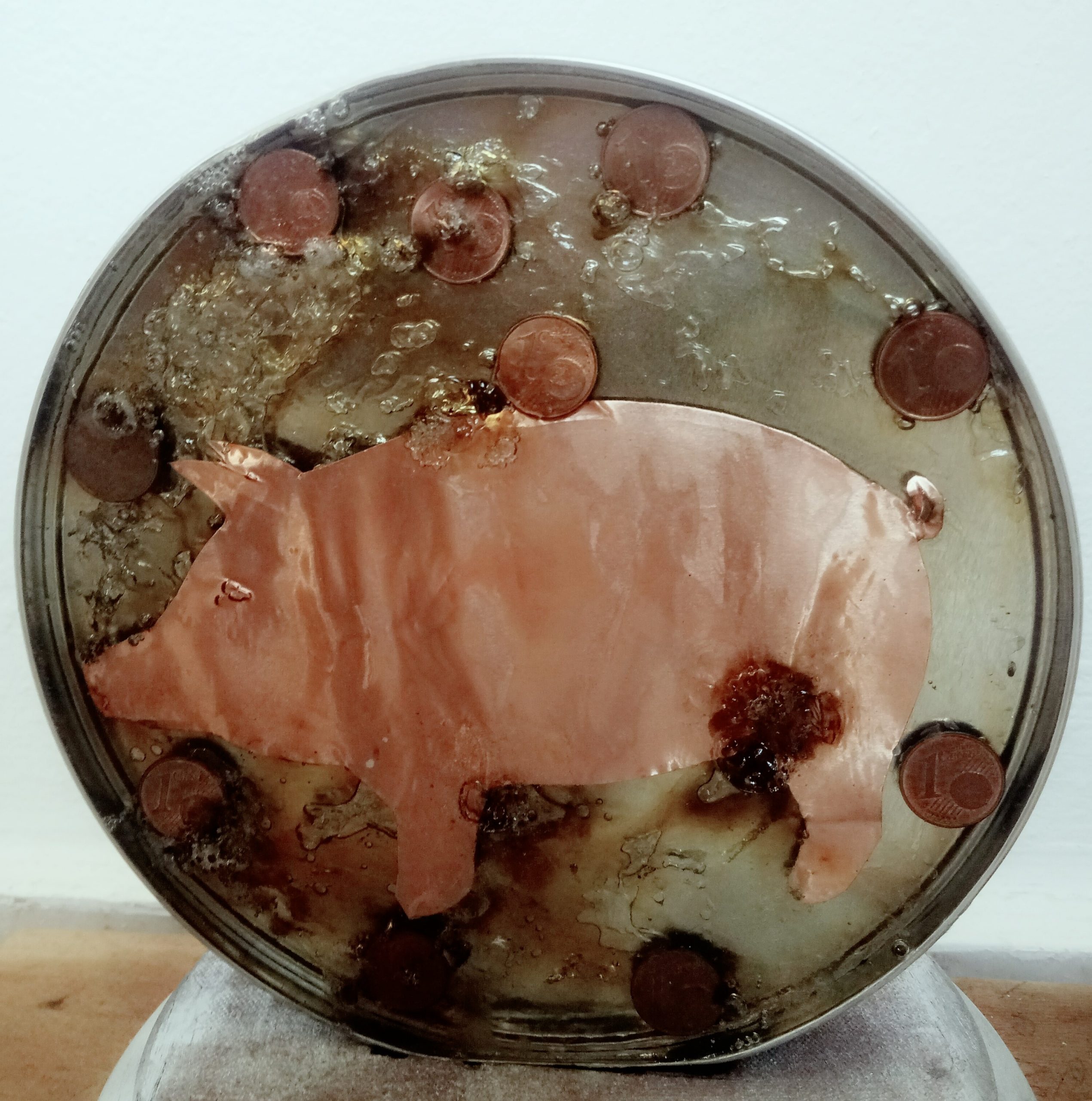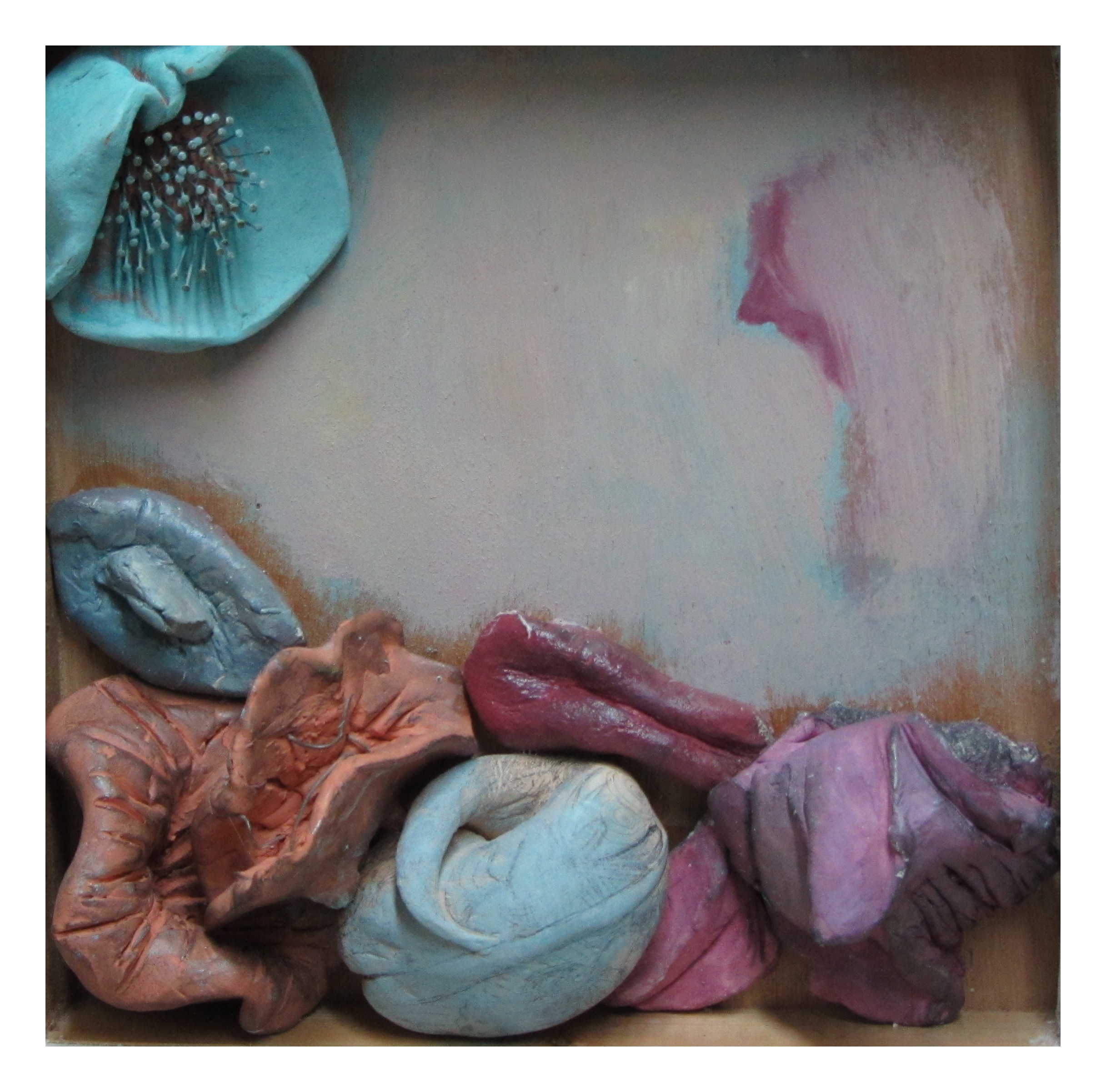 «Μνήμες 2» Πηλός, σύρμα, ακρυλικά σε ξύλινο πλαίσιο 18x18x4 εκ.